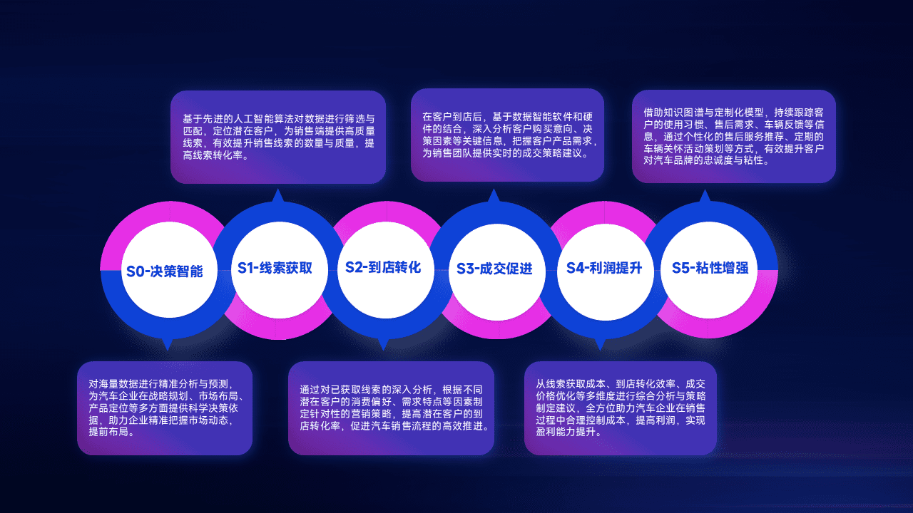 通过拓宽潜在客户来源、、优化线索分配并提高到店转化率,,,以增强销售效率。。。同时,,,利用线索数据不断优化分析模型,,有效提升转化率,,扩大营销影响力。。。